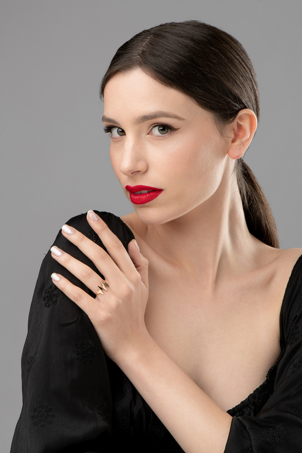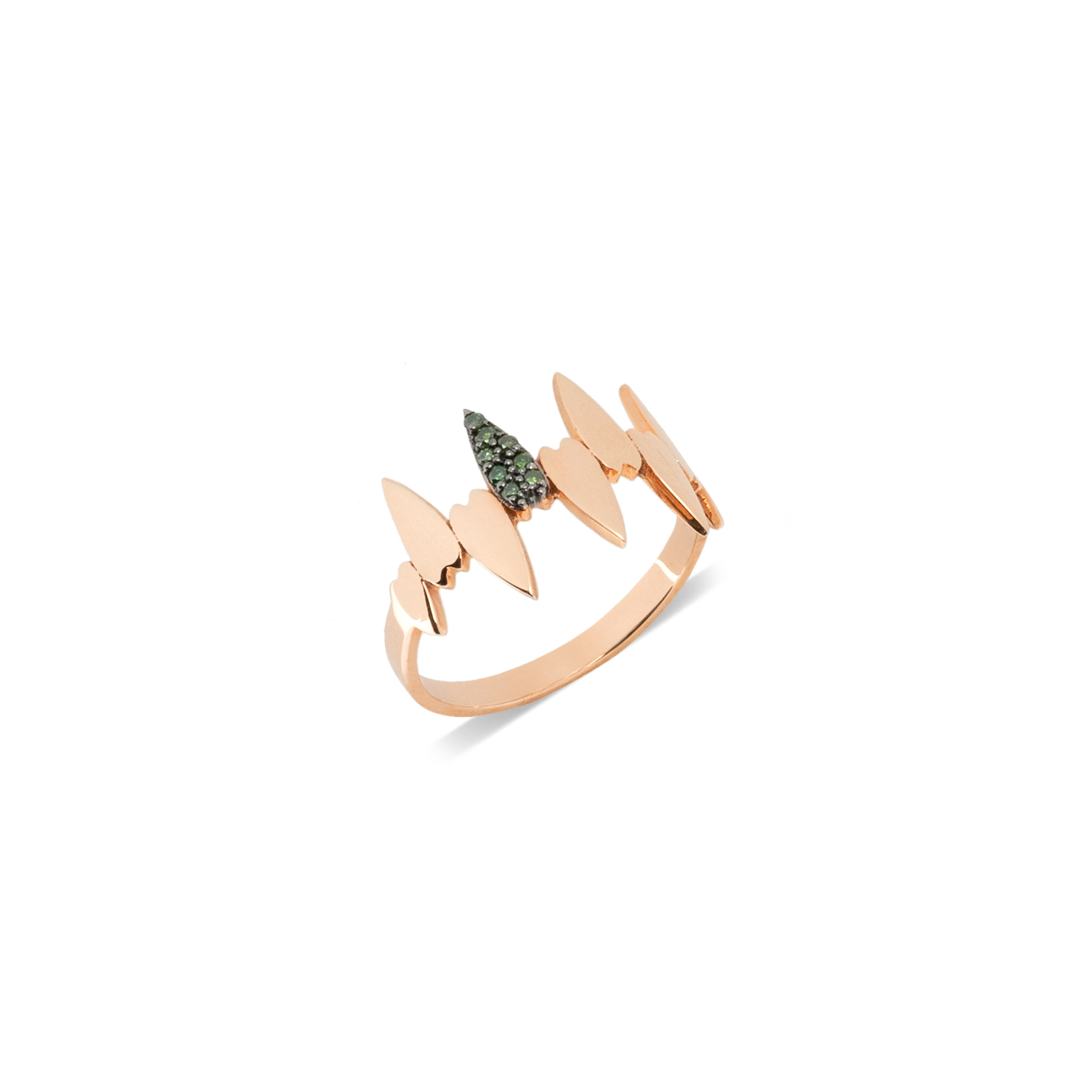 | Περιγραφή | Δαχτυλίδι από ροζ χρυσό 18Κ σε ένα αιχμηρό σχέδιο από καρδιές με μαύρα διαμάντια σε κοπή μπριγιάν |