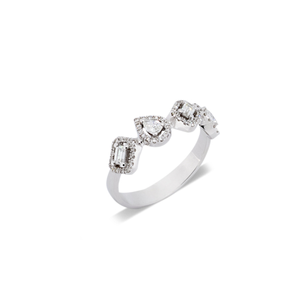 | Περιγραφή | Δαχτυλίδι σειρέ σε λευκό χρυσό 18Κ με διαμάντια 0,37 και μπριγιάν 0,23 σε ένα μοντέρνο ακανόνιστο σχήμα |