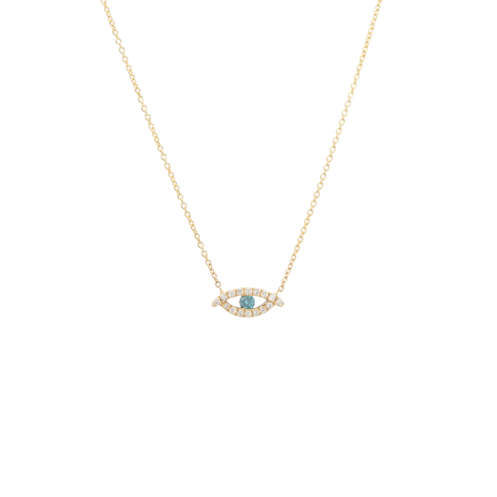 Περιγραφή Μενταγιόν με μπλε και λευκά μπριγιάν σε κίτρινο χρυσό 18Κ