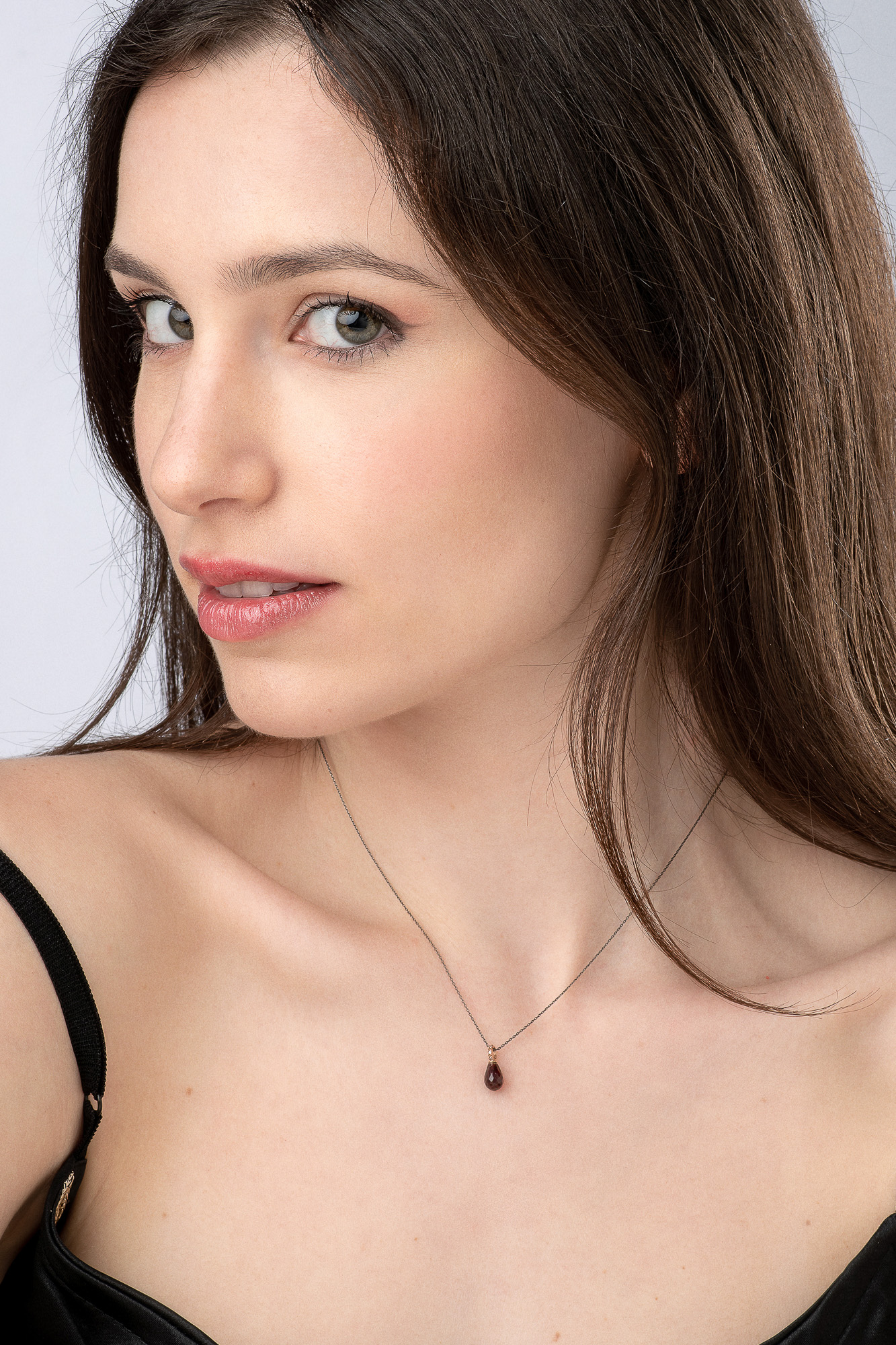 Μενταγιόν Δάκρυ Ροζ Χρυσό 14Κ με Κόκκινη Πέτρα και Μαύρο Επιπλατίνωμα