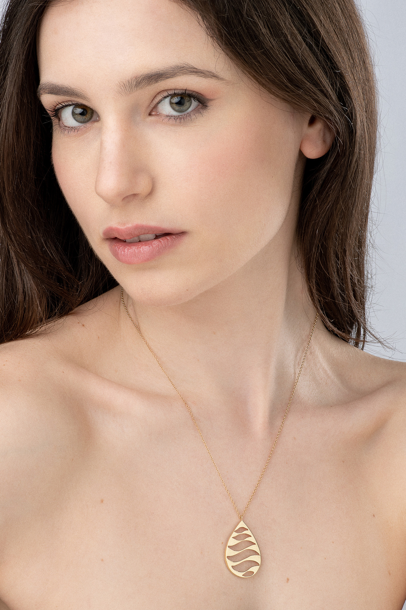 | Περιγραφή | Μενταγιόν από κίτρινο χρυσό 14 καρατίων σε διάτρητο σχέδιο σταγόνα. |