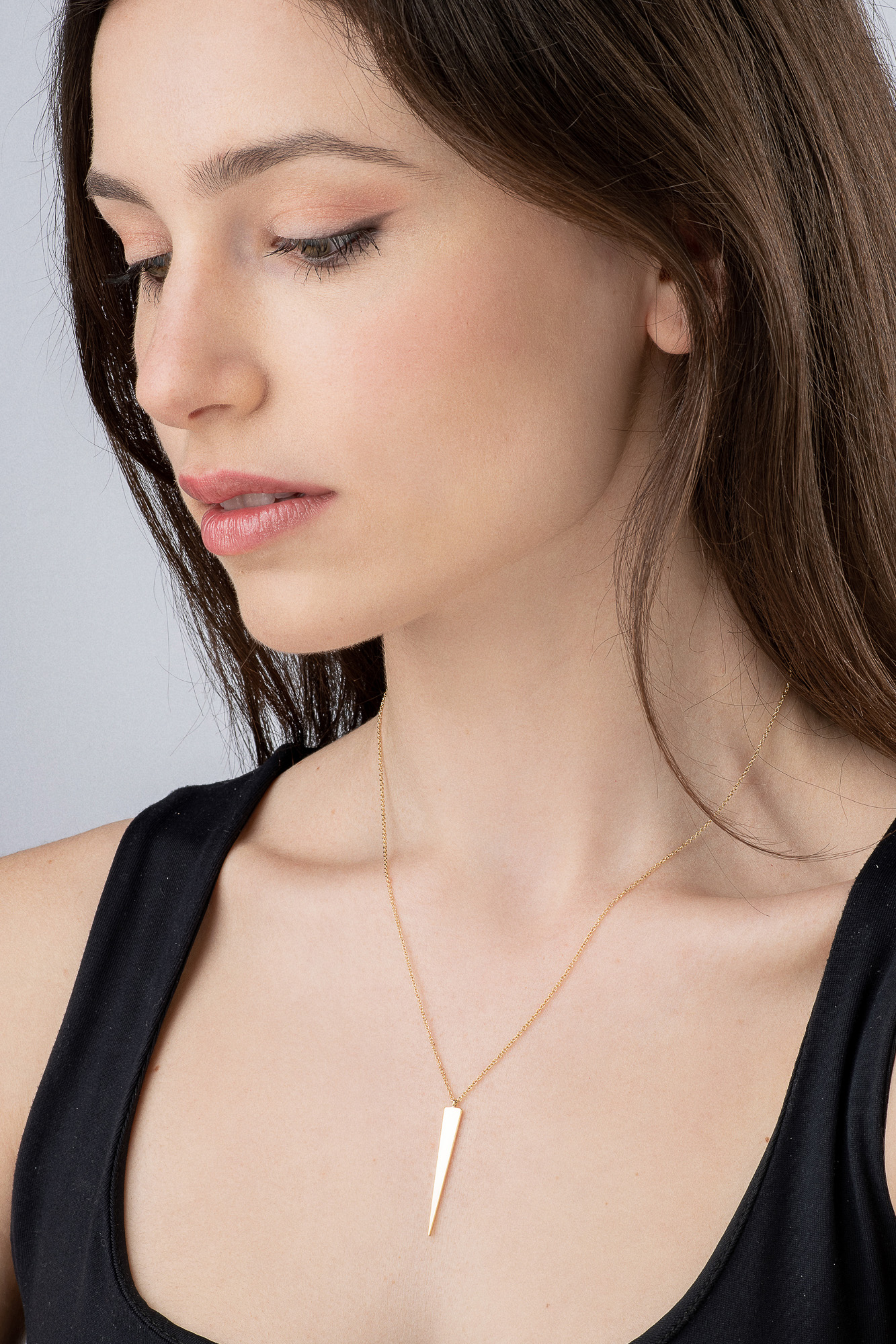 Περιγραφή Μενταγιόν σε σχέδιο κώνος από κίτρινο χρυσό 14 καρατίων σε διακριτικό design.