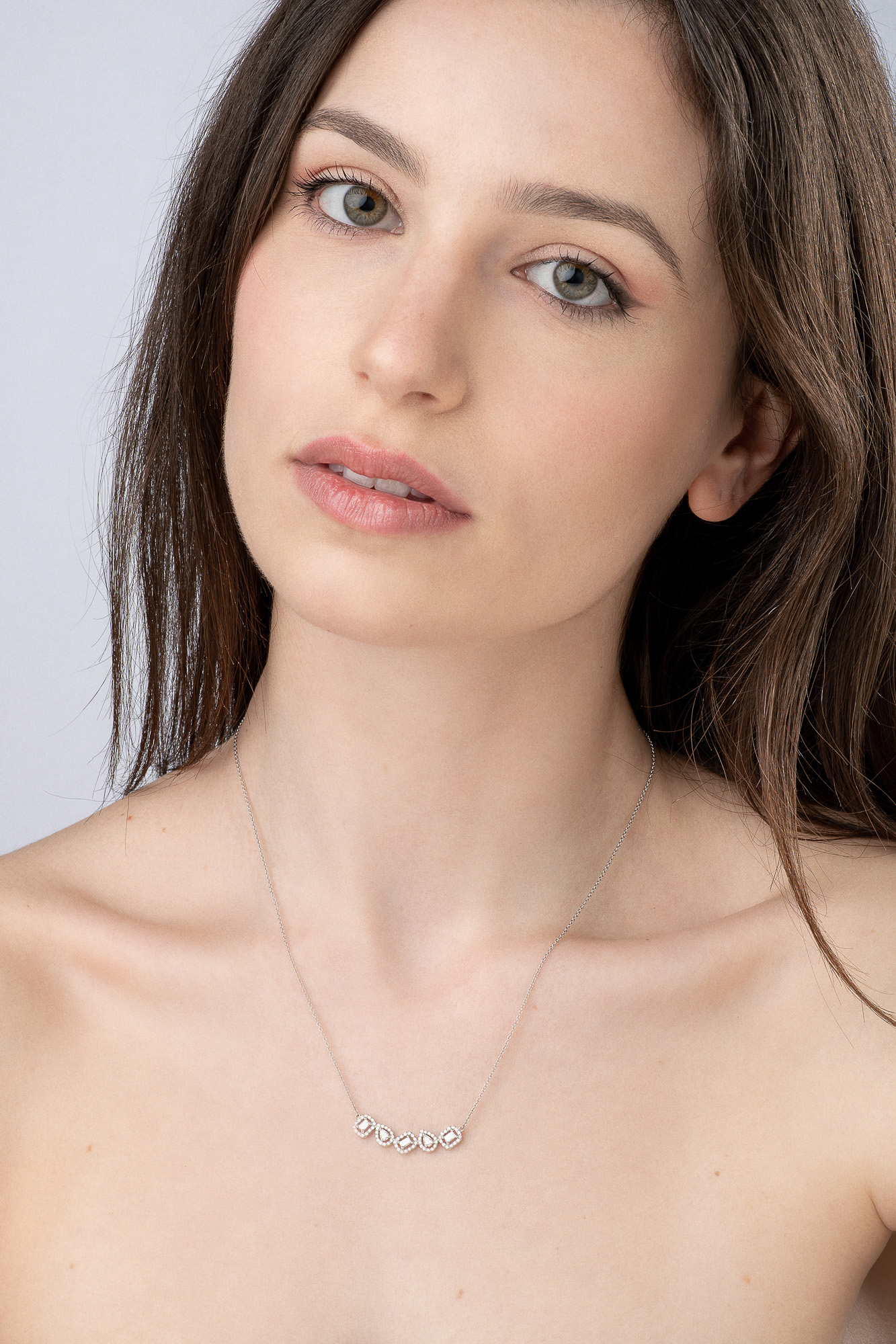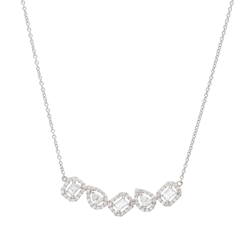 | Περιγραφή | Μενταγιόν από λευκό χρυσό 18 καρατίων ντυμένο με διαμάντια σε κοπή μπριγιάν και ακανόνιστο σχήμα. |