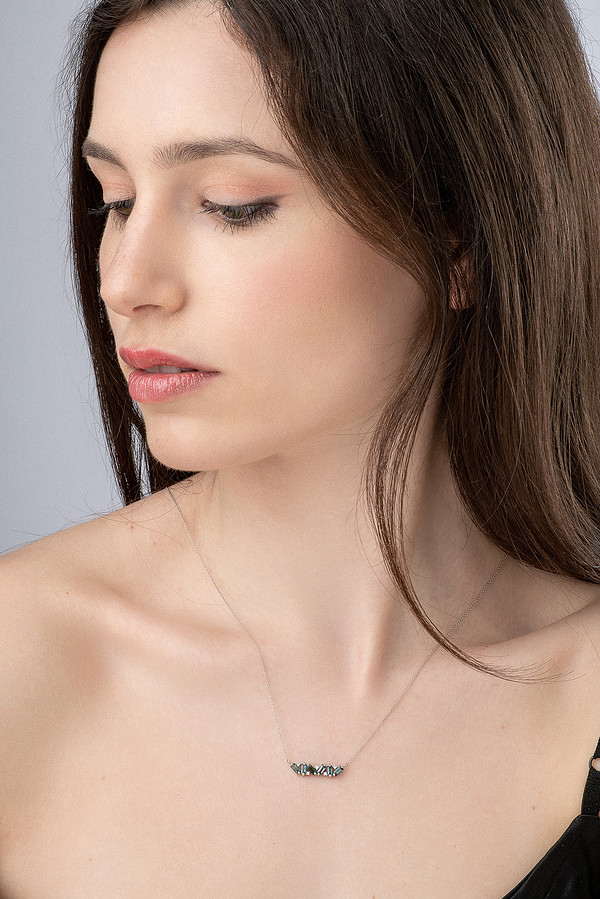 | Περιγραφή | Μενταγιόν από λευκό χρυσό 18Κ με ακανόνιστες τουρμαλίνες και μπριγιάν |