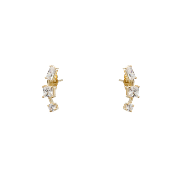 | Περιγραφή | Σκουλαρίκια από κίτρινο χρυσό 14Κ σε σχέδιο μπάρας διακοσμημένα με λευκά ζιργκόν |