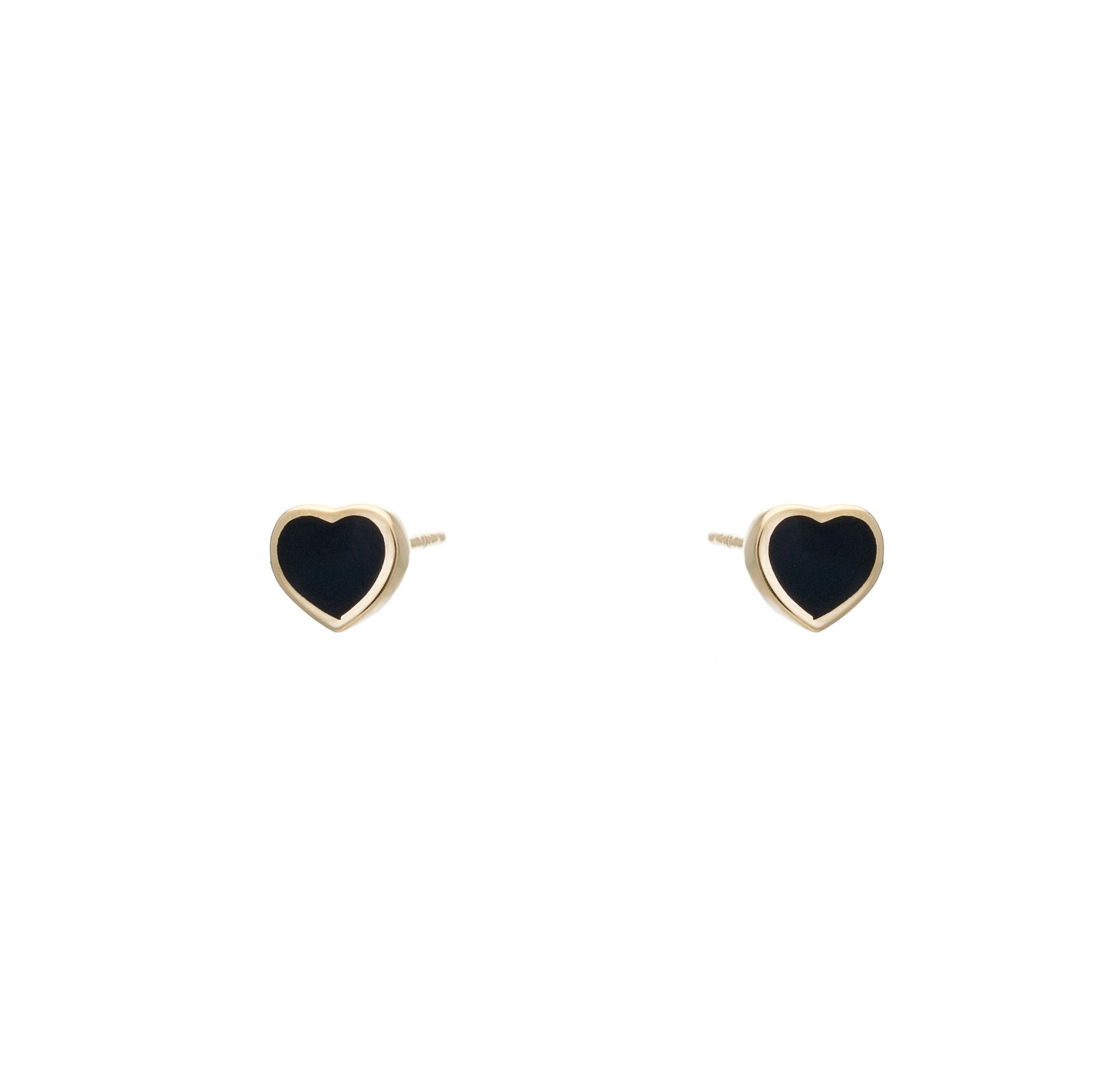 Σκουλαρίκια Καρδιά Κίτρινο Χρυσό 14Κ με Μαύρο Σμάλτο