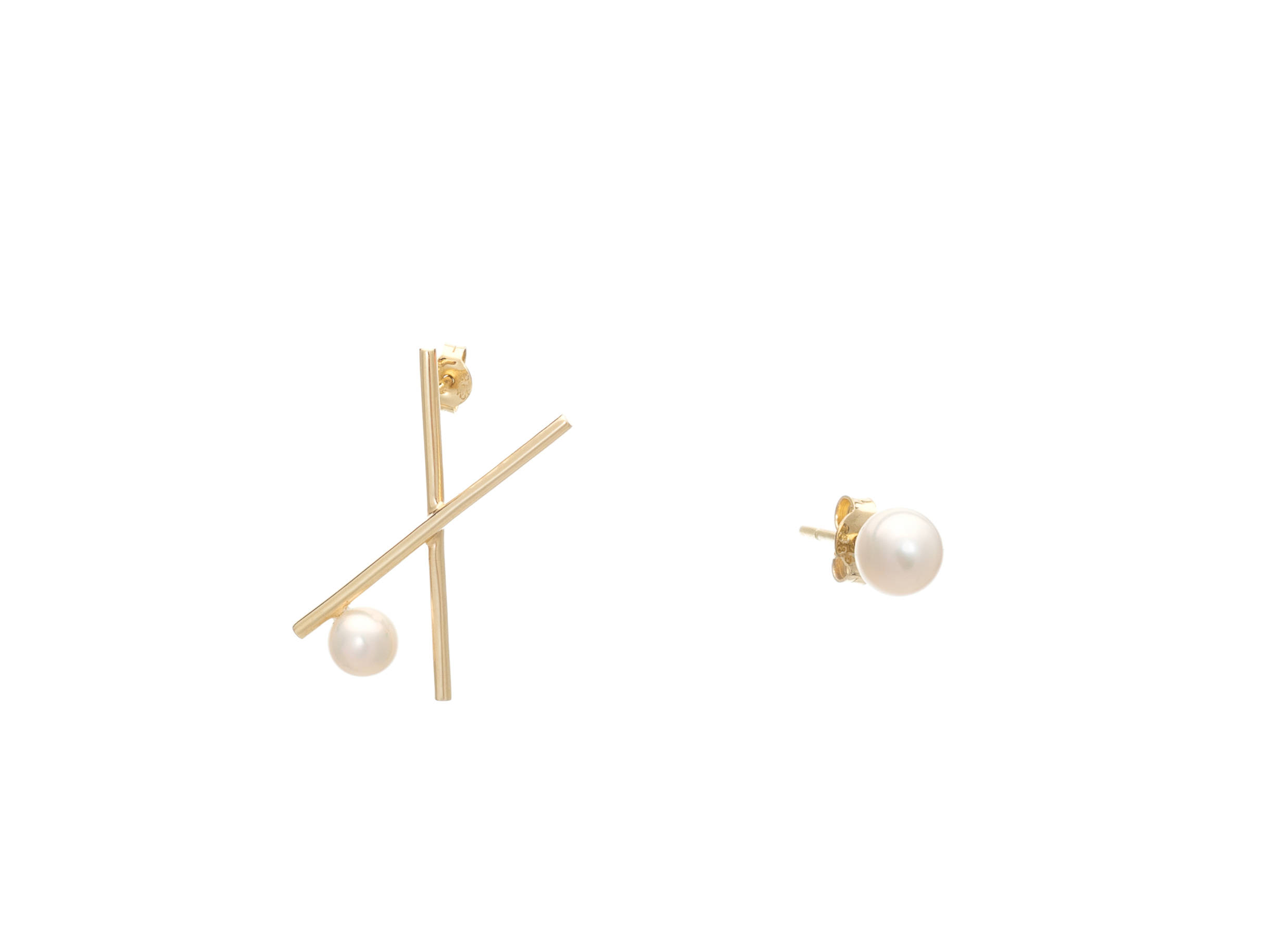 Περιγραφή Σκουλαρίκια από κίτρινο χρυσό 14Κ σε ένα εναλλακτικό σχέδιο με μαργαριτάρια