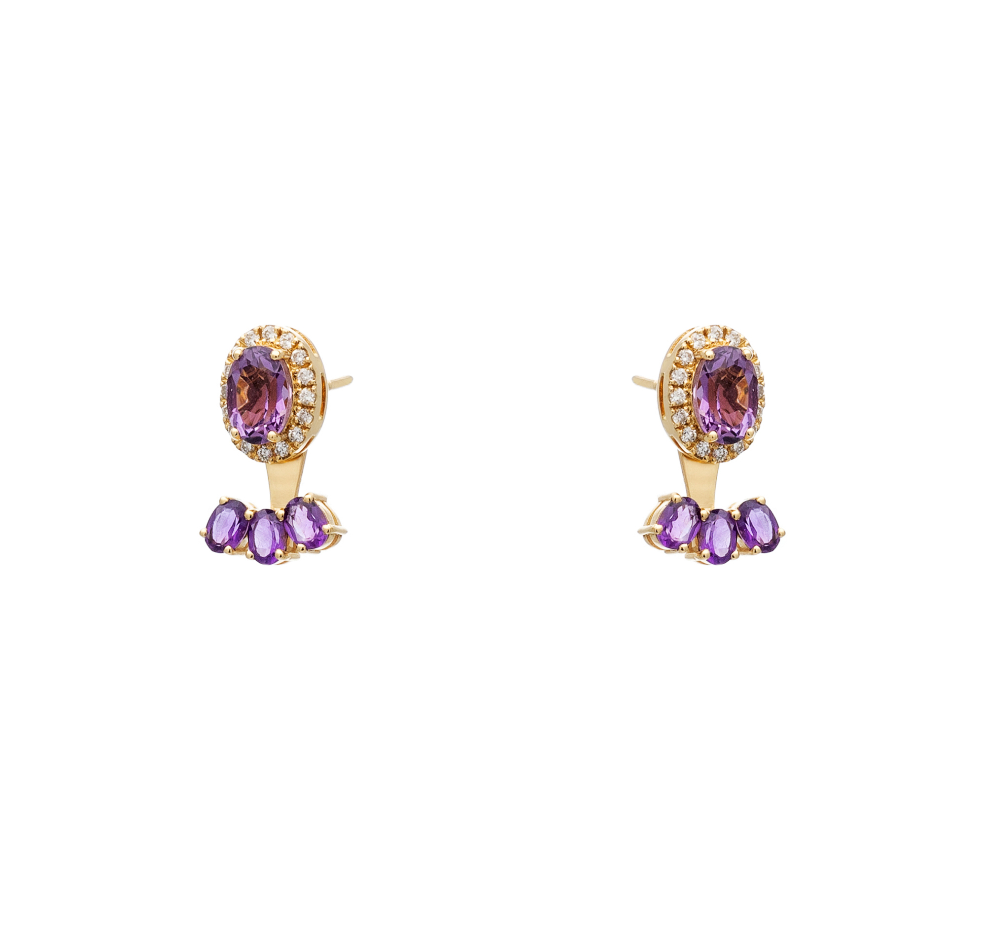 | Περιγραφή | Σκουλαρίκια σε κίτρινο χρυσό 18Κ διακοσμημένα με διαμάντια και αμέθυστο |