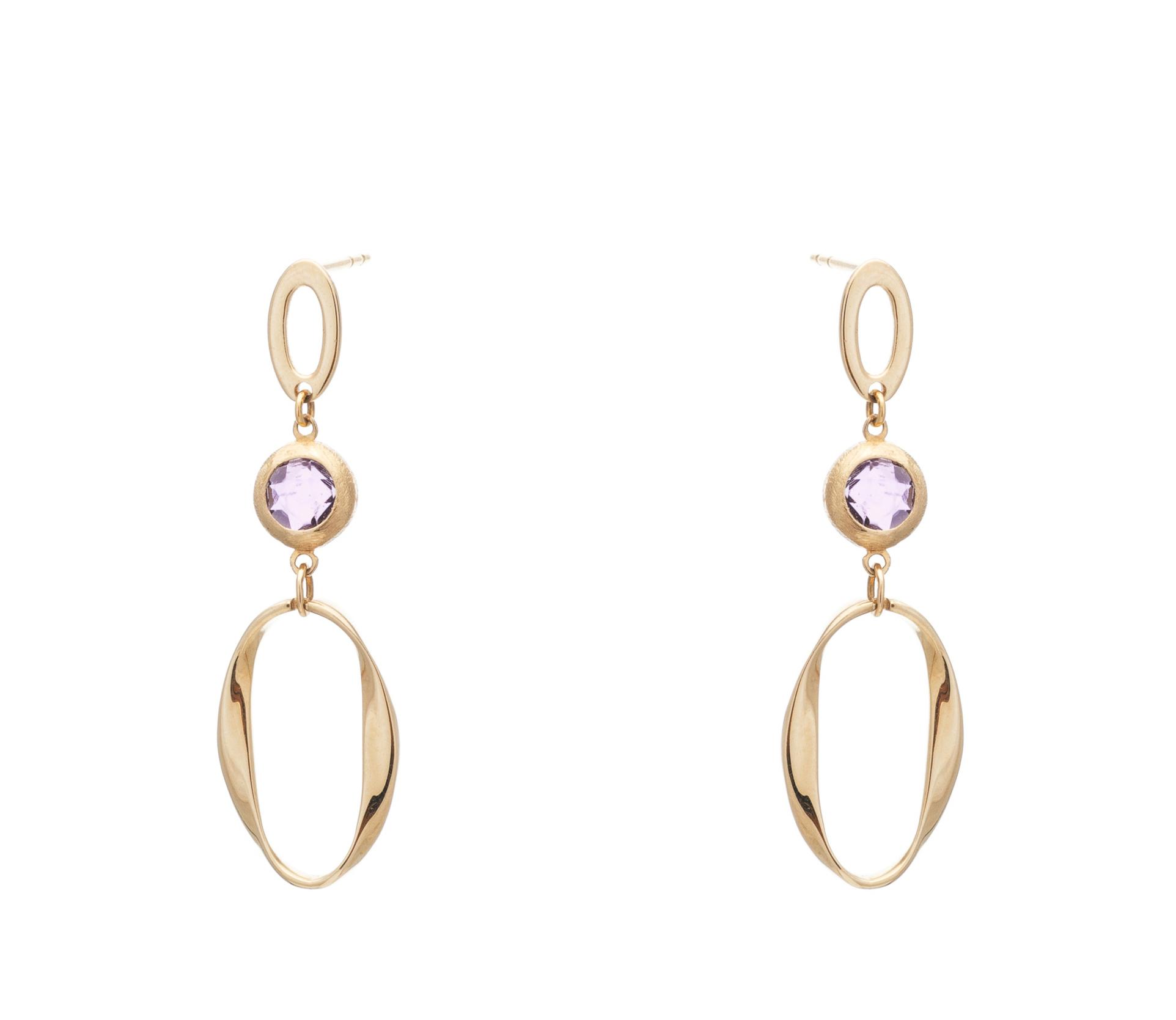 Σκουλαρίκια Κρεμαστά Κίτρινο Χρυσό 14Κ με Αμέθυστο