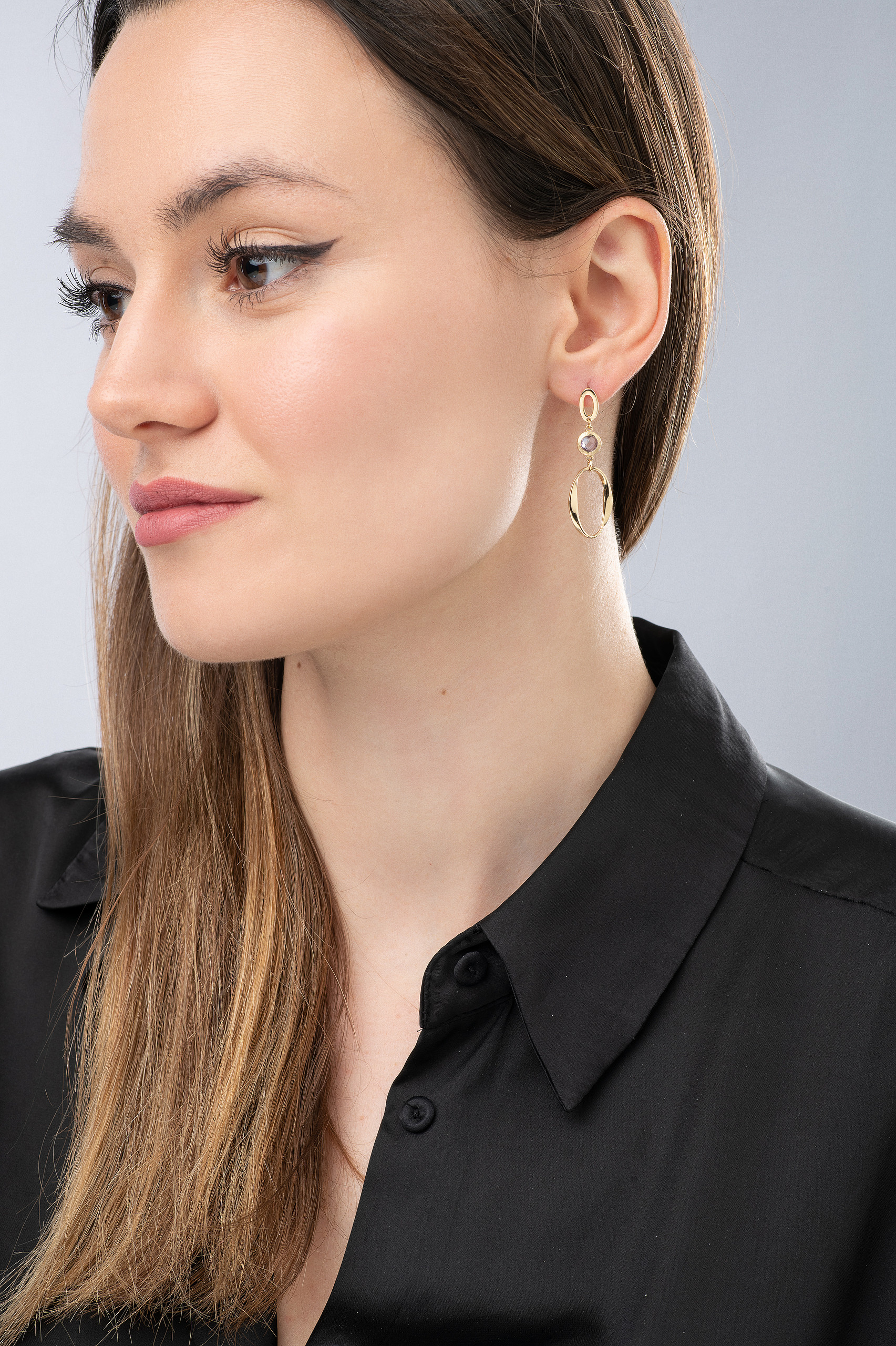 | Περιγραφή | Σκουλαρίκια κρεμαστά από κίτρινο χρυσό 14Κ με μοναδικό σχέδιο στολισμένο με αμέθυστο σαν πολύτιμο λίθο |