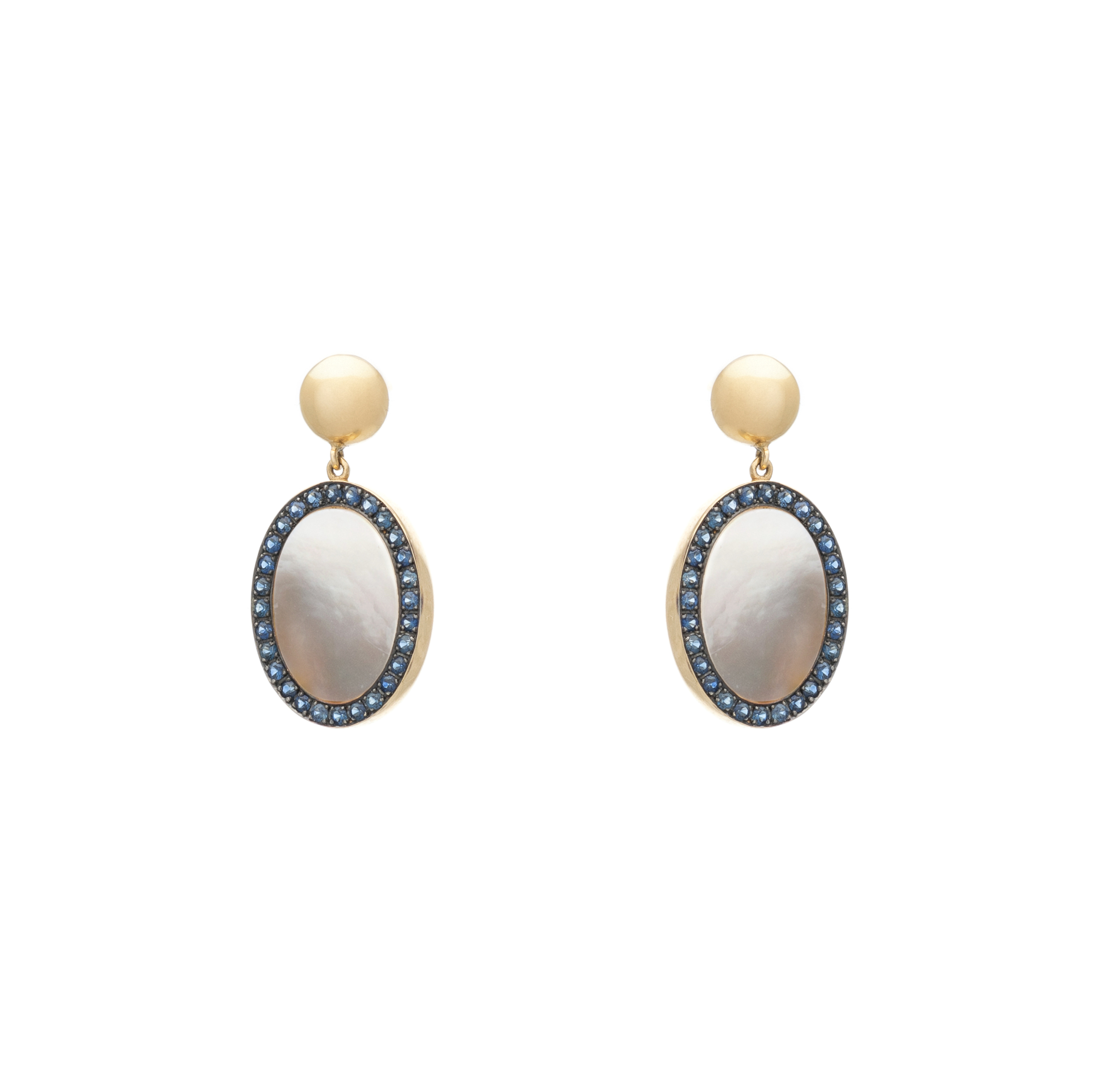 Σκουλαρίκια Κρεμαστά Κίτρινο Χρυσό 18Κ με Φίλντισι και Ζαφείρια