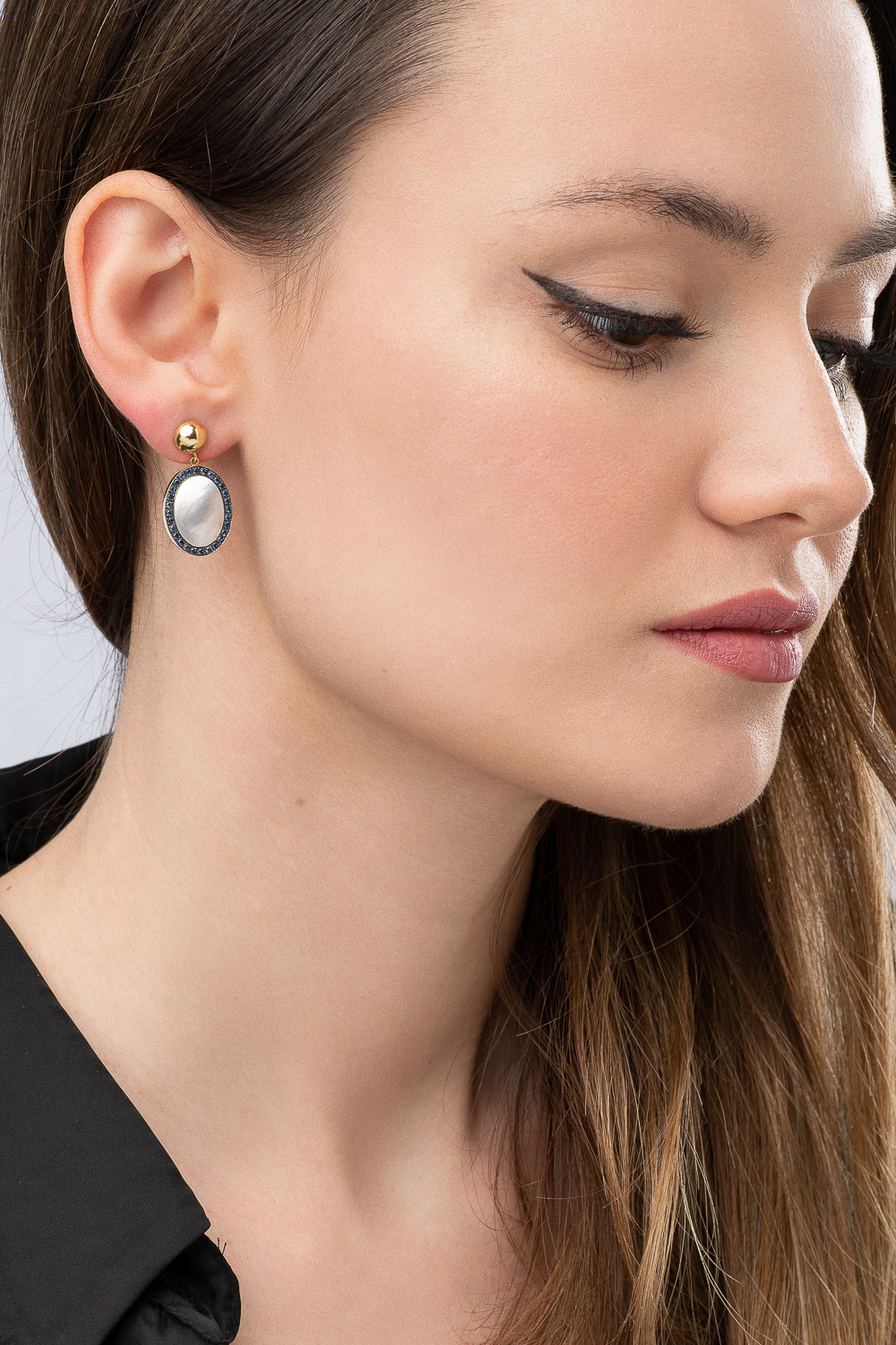 Περιγραφή Σκουλαρίκια κρεμαστά σε ένα χαρακτηριστικό design από κίτρινο χρυσό 18Κ σε συνδυασμό φίλντισι και εντυπωσιακών ζαφειριών