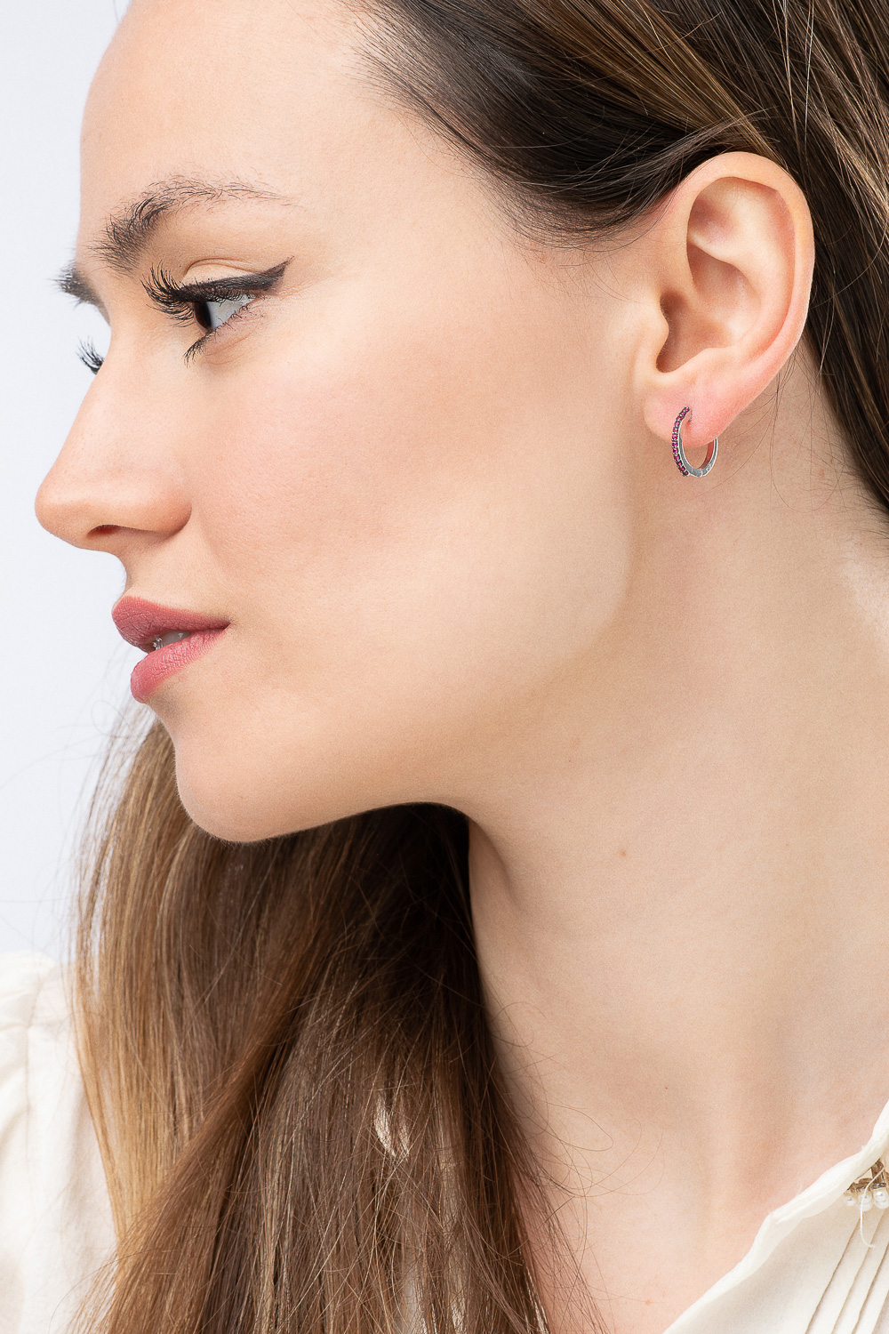 Σκουλαρίκια Κρικάκια Λευκό Χρυσό 18Κ με Ρουμπίνια