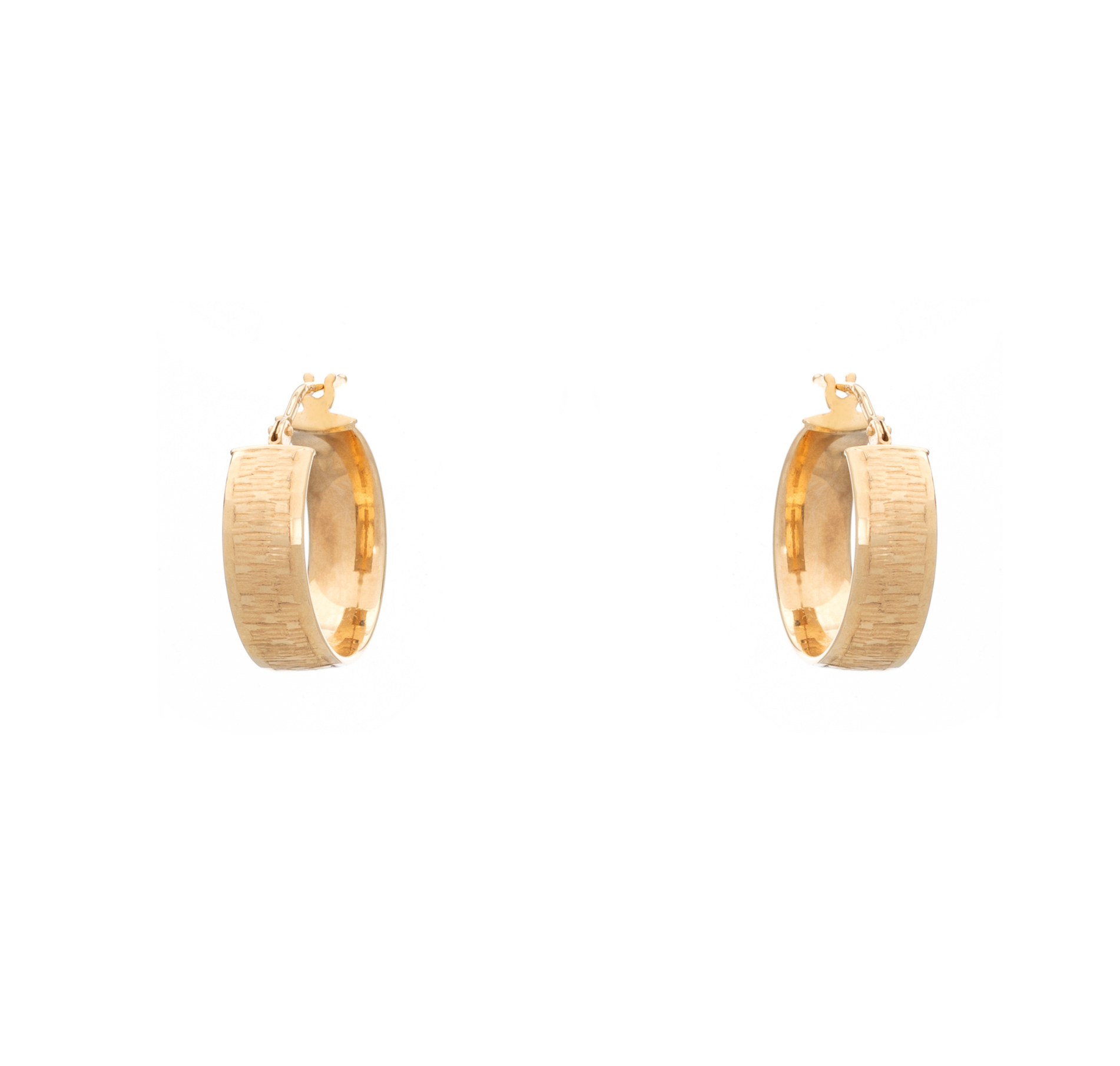 Σκουλαρίκια Κρίκοι Κίτρινο Χρυσό 14Κ με Γραμμικά Σκαλίσματα