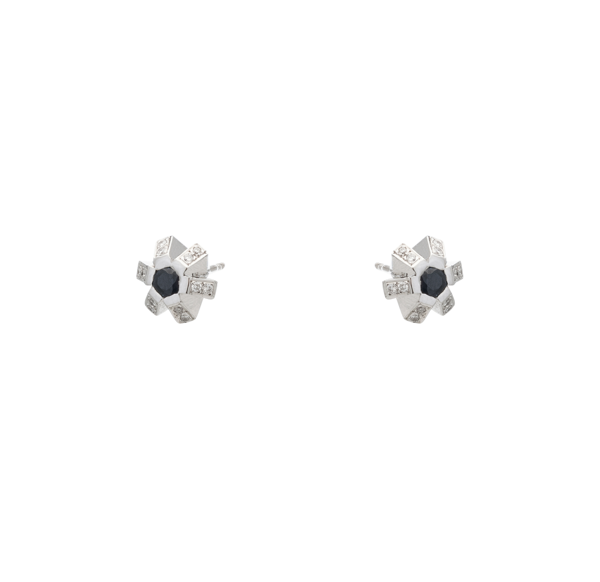 Σκουλαρίκια Λευκό Χρυσό 18K με Ζαφείρι και Μπριγιάν