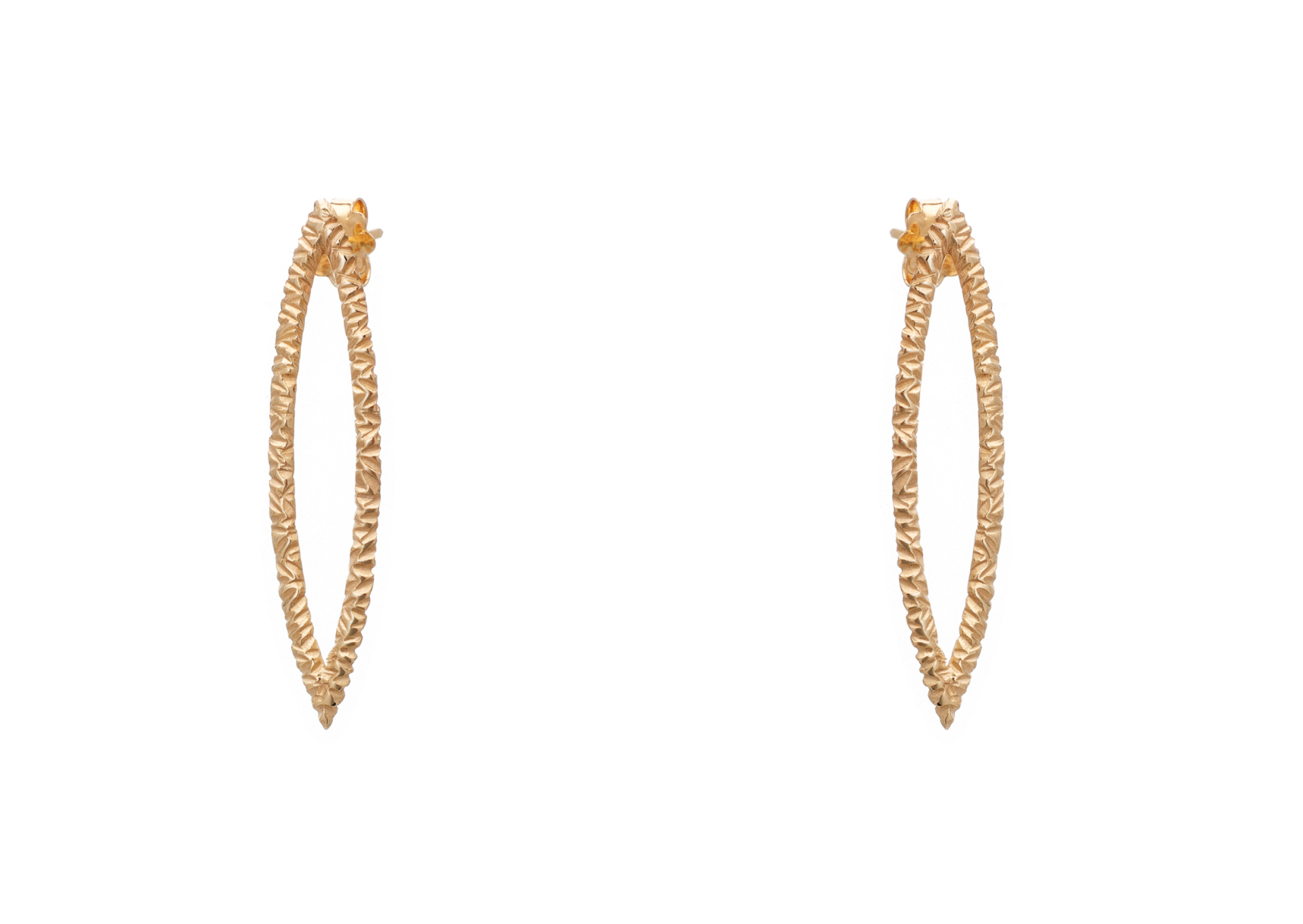 | Περιγραφή | Σκουλαρίκια χειροποίητα από κίτρινο χρυσό 14Κ σε ένα σφυρήλατο μοναδικό σχέδιο |