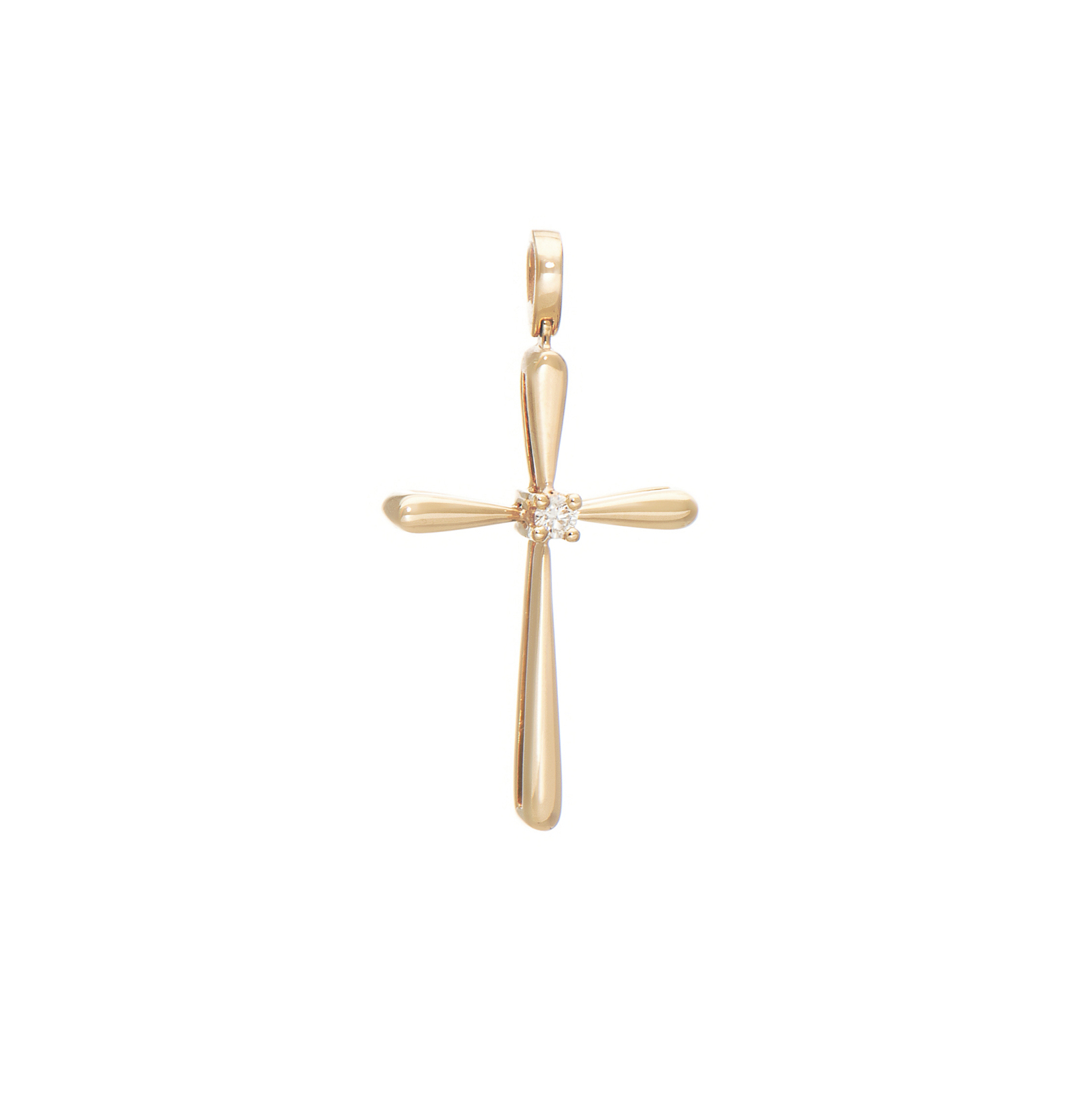 Περιγραφή Σταυρός από κίτρινο χρυσό 18Κ σε ένα περίτεχνο σχέδιο με ένα κεντρικό διαμάντι