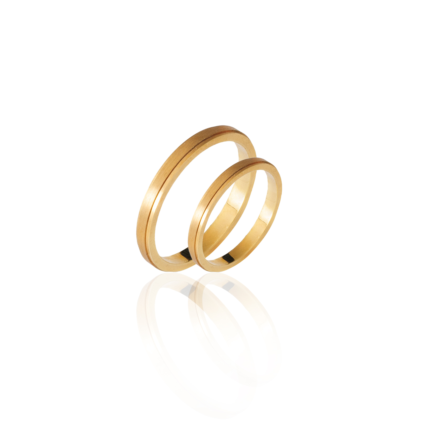 Περιγραφή Βέρες από κίτρινο χρυσό 14Κ σε συνδυασμό σατινέ φινίρισμα με λούστρε γραμμές στα πλάγια