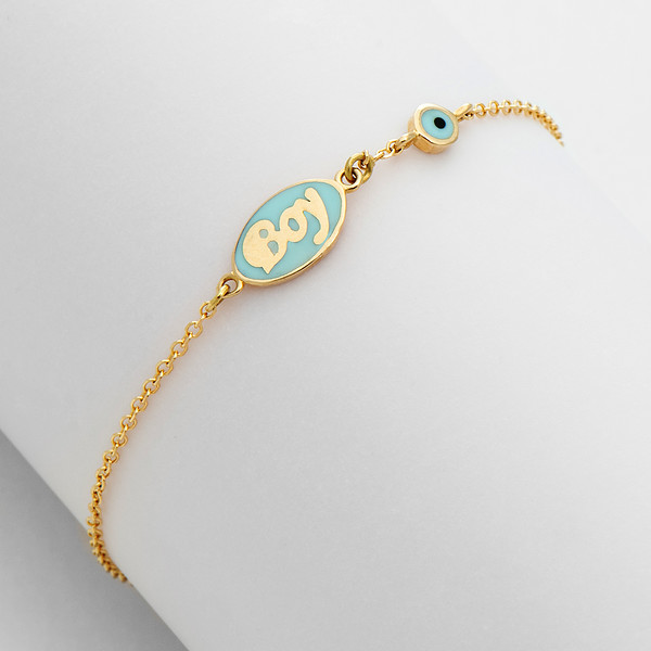| Περιγραφή | Βραχιόλι από κίτρινο χρυσό 14Κ διακοσμημένο με μάτι και γαλάζιο σμάλτο |
